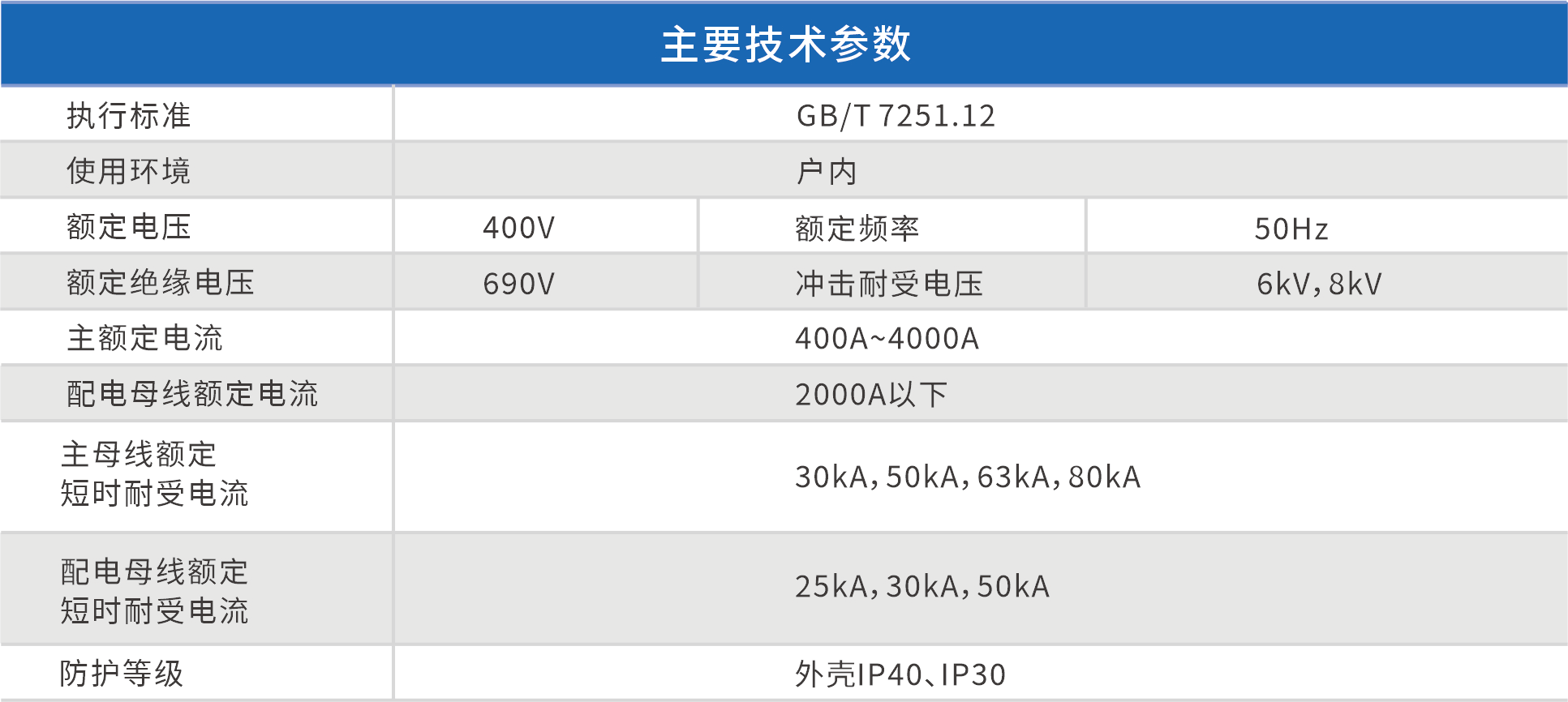- 該裝置適用于交流50HZ、額定工作電壓400V、額定電流4000A 及以下的控配電系統(tǒng)作為動力配電、電動機控制及照明等配電設(shè)備。